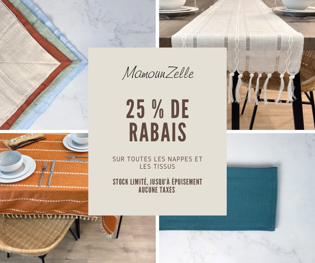 Nos nappes en tissus naturels apportent une touche chaleureuse et sophistiquée à votre table. Conçues pour durer, elles sont disponibles en plusieurs motifs et couleurs pour s'harmoniser avec votre style. Parfaites pour un repas en famille ou une réception, elles transforment chaque occasion en un moment spécial.